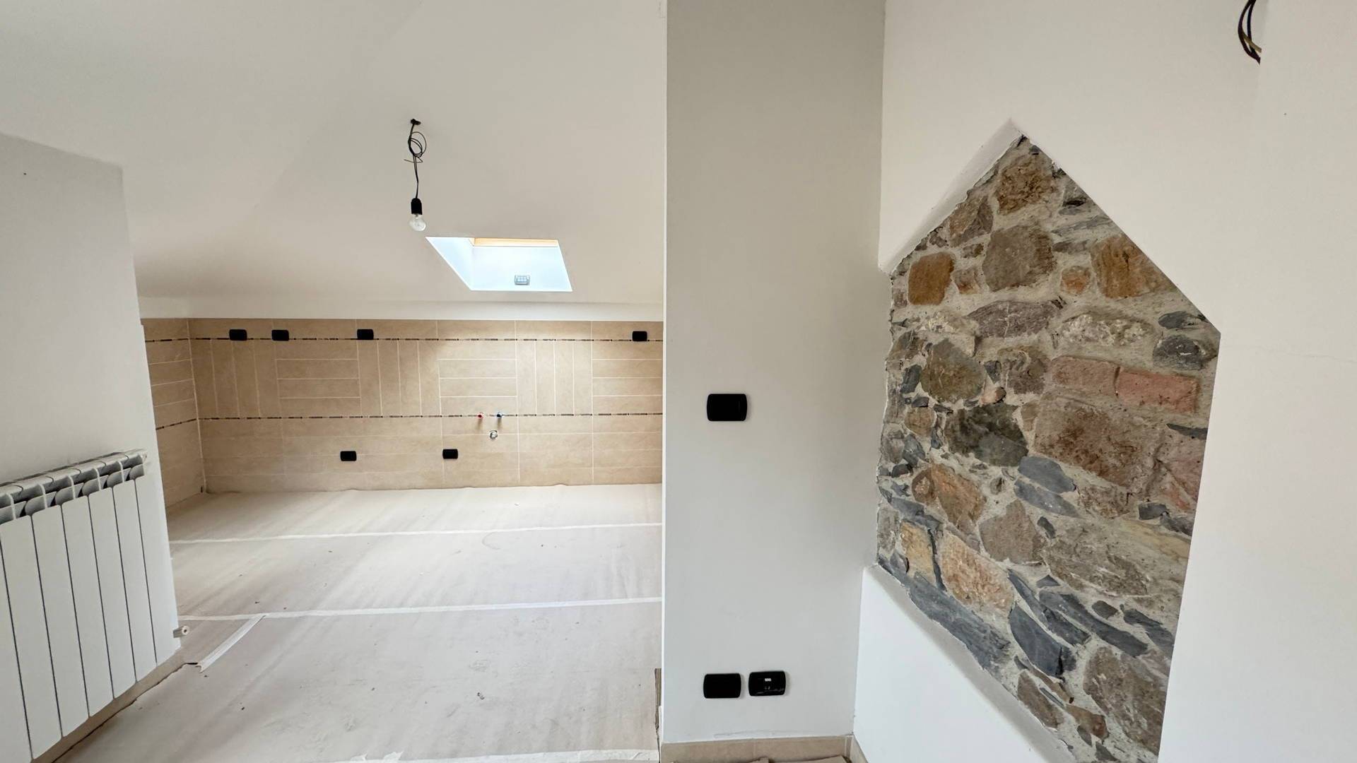 Appartamento nel centro di Alassio in zona Muretto di fronte al Municipio, a 150 metri dalle spiagge con tutti i servizi sotto casa ed a pochi passi dalla stazione ferroviaria comodamente raggiungibile a piedi. L’appartamento comprende l’intero ultimo piano mansardato di villa Emma, un elegante edificio in stile liberty caratterizzato dalla bella torretta alta oltre 6 metri al colmo in cui si trova la sala con vista mare. E’ attualmente in corso la ristrutturazione dell’appartamento con l’installazione di un ascensore che dal piano terreno arriverà direttamente all’interno dell’unità immobiliare. La superficie di 136 mq comprende: il vano di ingresso dove si trova l’arrivo dell’ascensore, l’ampia cucina abitabile con terrazzino, la zona notte con due spaziose camere da letto e due bagni completi, la spettacolare sala sita nella caratteristica torretta, luminosissima grazie all’altezza del soffitto ed alle ampie finestre ad arco con vista mare. La sala, piacevole ed ariosa, si presta ad ospitare un bel soggiorno convertibile all’occorrenza in sala da pranzo per gli ospiti, essendo la cucina sufficientemente spaziosa per contenere il tavolo per la gestione quotidiana. La cucina e le stanze della zona notte sono mansardate con una altezza minima di due metri che consente una fruizione ottimale di tutto lo spazio. L’immobile verrà consegnato completamente ristrutturato a nuovo. Il riscaldamento e la produzione di acqua calda sono autonomi con caldaia a metano ed è presente il climatizzatore con pompa di calore caldo/freddo. La proprietà comprende un prezioso box auto di 18 mq al piano seminterrato.